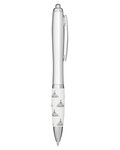 • Retractable curvy plastic barrel ballpoint pen with stock art grip featuring a Church Emoticon